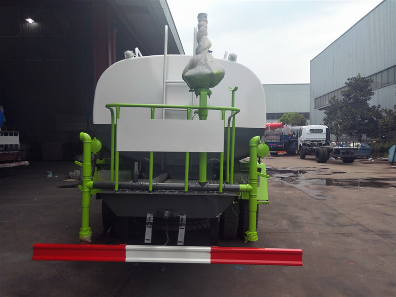 上裝配置:罐體采用國標(biāo)Q235碳鋼板材制作,罐體厚度4mm,前后封頭5MM加厚型,罐體實際容積9方(噸), 產(chǎn)品質(zhì)量成熟可靠,設(shè)計**合理,比同類灑水泵吸程遠、壓力大、使用壽命長,可泵進泵出。前沖、后灑、側(cè)噴, 消防栓接口,帶后工作平臺及綠化灑水高炮(可全方位旋轉(zhuǎn),可連續(xù)調(diào)成直沖狀、大雨、小雨、毛毛雨),水位計, 兩根等長輸水管,其余標(biāo)配。 |