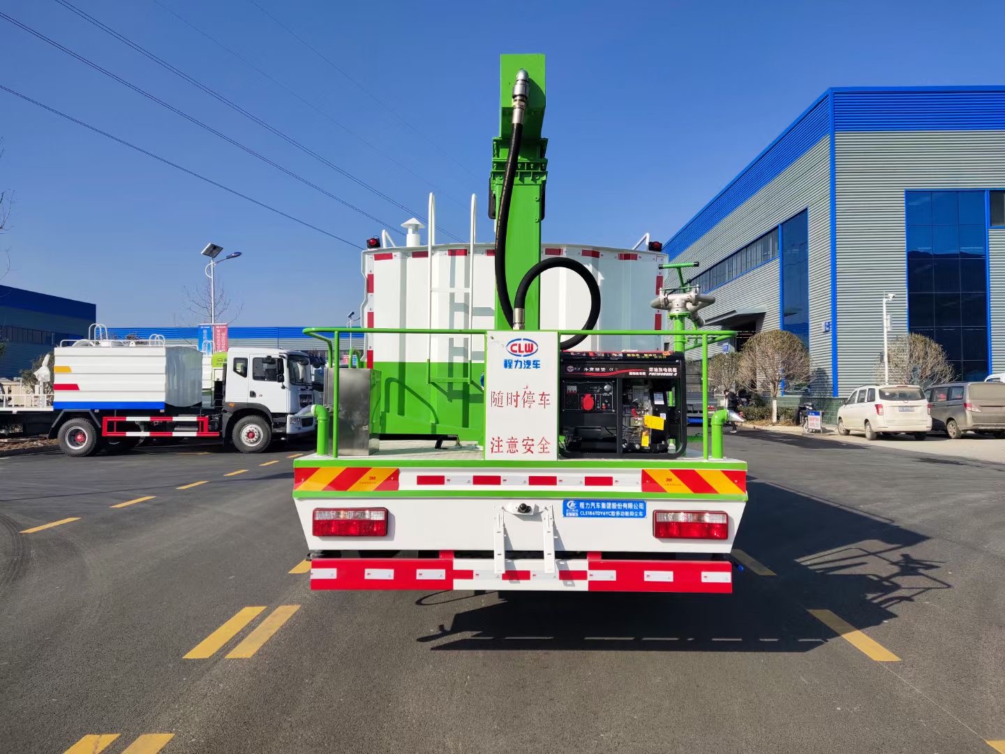 整車采用全智能電控操作(駕駛室觸屏、無線遙控、手動三種方式操作),車輛噴淋系統、攪拌功能、旋轉臂功能。單本流量計等,除了底盤及水罐自吸自排以外的功能,可選全部采用車載副發電機組組提供動力,配電箱預留外接電源接頭套,可采用市電轉換。噴淋系統加裝單車流量計(用于計量每節火車皮的抑塵劑噴灑量),噴淋系統可加裝鉤檔停噴系統(接觸式感應噴淋,兩節火車皮之間停噴)。可選帶有車號識別與記錄功能。整車噴淋系統、單車流量計與車號識別記錄功能,視頻監控等全部連接到和反應到智能電腦屏幕上面。