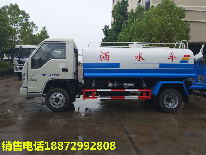 隨底盤選裝駕駛室;品名:水,密度:1000千克/立方米,有效容積4.09立方米,罐體尺寸(長×寬×高)(mm):3400×1600×1100;ABS吸程≧7米,灑水寬度≧14-16米,射程≧25-30米,引水時間<5min,流量60m3/h。前沖(噴)、后灑、帶側噴(花灑)、帶后工作平臺、平臺上安裝綠化灑水高炮(炮噴射形狀可調節:直沖、大雨、中雨、毛毛雨、霧狀、可連續調節,360°旋轉),配消防接口,自流閥,濾網,帶自吸自排功能。配備大功率專用灑水泵,泵可自吸自排,安裝過濾網,帶消防接口,可通過消防栓進水,帶自流閥,隨車選裝20米綠化卷盤,可噴灑農藥,罐體金屬漆。罐體有橢圓和方圓罐兩種,可根據用戶的要求定做 發動機可選,云內,朝柴 ,錫柴,全柴