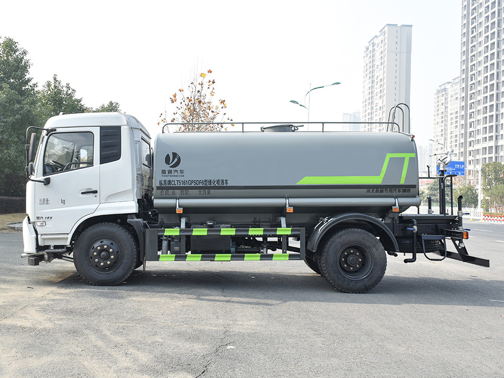 東風(fēng)天錦12放灑水車標(biāo)配前噴(鴨嘴)、后沖、后灑、側(cè)噴、后置式工作 平臺(tái),平臺(tái)上配置綠化水炮(可 360°旋轉(zhuǎn),既可以調(diào)成柱狀,也可 以調(diào)成霧狀,更可以調(diào)成直沖狀、大雨、中雨、小雨、毛毛雨),配 備優(yōu)質(zhì)大功率專用灑水泵(可自吸自排,可從河里或池塘抽水到罐體), 取力器,雜物過(guò)濾網(wǎng),消防接口,自流球閥系統(tǒng)、取力器、球閥、濾網(wǎng) 均為國(guó)家標(biāo)準(zhǔn)產(chǎn)品,主管道加粗,法蘭墊、法蘭盤加厚,大通徑球閥。 整體具備性能優(yōu)良安全可靠、效率高、流量大、維修方便等特點(diǎn)。