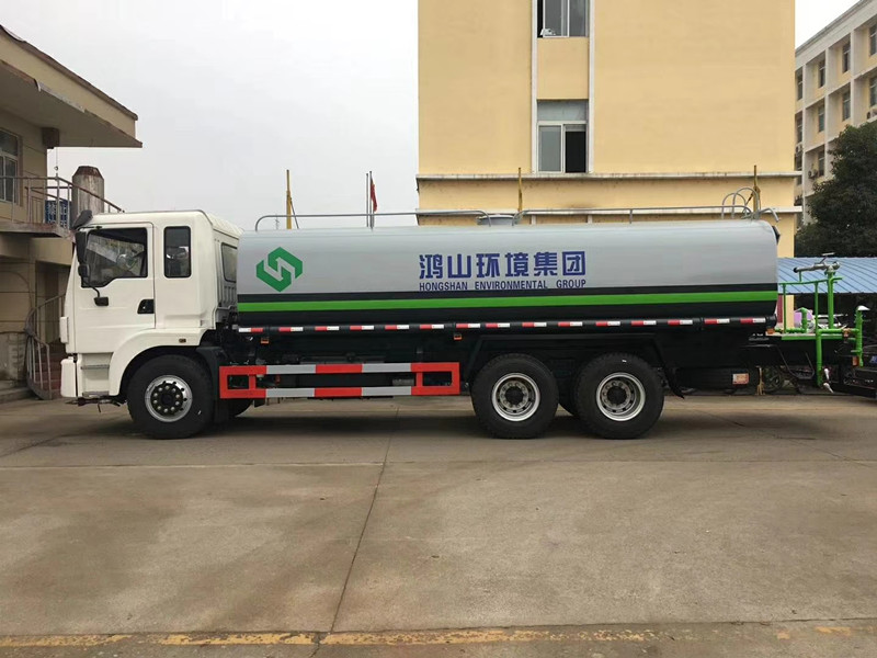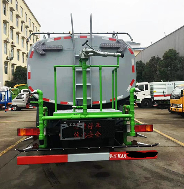 隨底盤(pán)選裝駕駛室;選裝側(cè)噴及農(nóng)藥炮;品名:水;密度:1000千克/立方米;有效容積:15.6立方米;罐體外形尺寸(長(zhǎng)×長(zhǎng)軸×短軸)(mm):6600×2300×1500;ABS吸程≧7米,灑水寬度≧14-16米,射程≧25-30米,引水時(shí)間<5min,流量60m3/h。前沖(噴)、后灑、帶側(cè)噴(花灑)、帶后工作平臺(tái)、平臺(tái)上安裝綠化灑水高炮(炮噴射形狀可調(diào)節(jié):直沖、大雨、中雨、毛毛雨、霧狀、可連續(xù)調(diào)節(jié),360°旋轉(zhuǎn)),配消防接口,自流閥,濾網(wǎng),帶自吸自排功能。配備大功率專用灑水泵,泵可自吸自排,安裝過(guò)濾網(wǎng),帶消防接口,可通過(guò)消防栓進(jìn)水,帶自流閥,隨車(chē)選裝20米綠化卷盤(pán),可噴灑農(nóng)藥,罐體金屬漆。罐體有橢圓和方圓罐兩種,可根據(jù)用戶的要求定做。