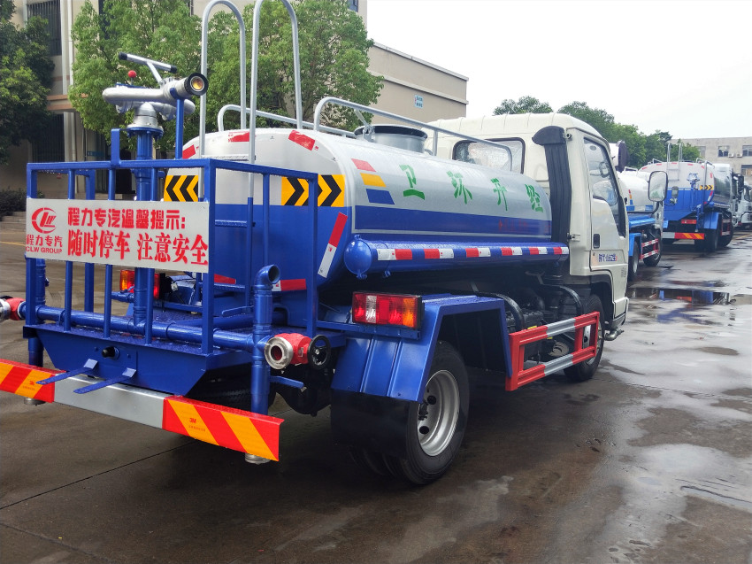凱馬2噸灑水車(國五),罐體容積2立方,藍牌灑水車常賣車型。采用凱馬新款凱捷車身(1640寬度)5檔變速箱,4噸后橋,140直通大梁,6.50-16輪胎,油剎,原廠方向助力,原廠ABS,原廠空調。整車帶免征,環保已達標。采用武鋼4mm優質碳鋼板一次卷壓成型,完全做到無縫成型。罐體內設多道防波隔板,采用高壓氣體試漏檢測,使罐體具有強度高,重心穩,車輛運載安全平穩。程力灑水車廠擁有自動化灑水車烤漆車間,罐體可保證5年不生銹。罐體及保險杠貼紅白色反光條,罐體兩側噴“灑水車”字樣(可按客戶指定要求噴繪字樣),罐體顏色可選擇上白下藍或銀灰銀藍