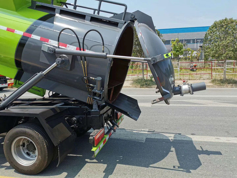 上裝配置:容‌積4立‌方,罐體采用優質碳鋼板材,罐體內部帶固液分離功能(全推推板,不銹鋼泔水分離網板),罐內加熱功能(用于嚴寒地帶防止罐內餐飲垃圾凍結凝固,采用柴油燃燒機加熱,加熱速度快效果好,可設置高低溫實現自動溫控)全液壓操作系統,工作人員操作方便,罐體舉升自卸,拉桿式掛桶提升機,可以掛120/240升垃圾桶進行作業,后蓋液壓驅動開啟、鎖緊,方便人員操作