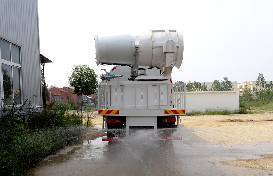 霧炮車抑塵車的底盤部分由汽車二類底盤構成,專用部分主要由罐體、噴霧機(霧炮)、液壓管路、電子控制系統構成。