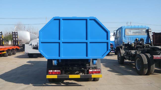 2. 垃圾車(chē)箱體:采用全金屬密封式結(jié)構(gòu),用以盛裝垃圾,用鋼板和槽鋼焊接而成,垃圾車(chē)箱體下部有貨箱底架,箱體經(jīng)底架用螺栓與底盤(pán)緊密相連。垃圾車(chē)箱體前部有卸料機(jī)構(gòu)與油缸,后部有裝料斗,用以裝垃圾和壓縮垃圾到車(chē)廂體內(nèi)。