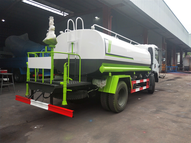 配備大功率灑水泵,具有自吸自排功能,垂直吸程>6米。帶前部沖洗路面噴灑裝置、后部扇形降塵噴灑裝置,兩側面噴灑裝置,后部工作平臺、平臺上安裝綠化灑水炮(炮噴射形狀可調),可調直沖狀、大雨、中雨、毛毛雨,可連續調節,自流閥及消防接頭各1個、水管3米2根。罐體內做環氧樹脂防腐處理。