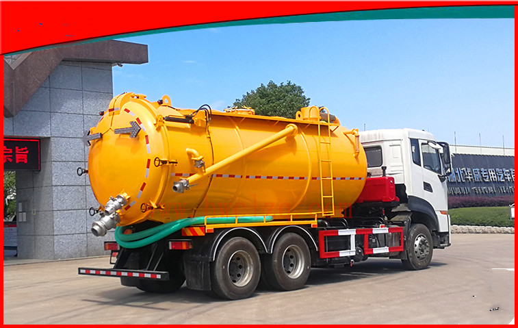 清洗裝置:配天津通潔300升高壓泵, 60米PVC雙層高壓管22通徑高壓管,10個高壓噴頭,兩個水泥蓋,頂部100的互通,水污互通用100的球閥,水罐3寸球閥安在罐體最底部.水倉污倉罐體內噴防銹,后封頭600的液壓口,一個6寸自流,一個4寸的進料口,一個4寸的排污口,側面一個6寸的球閥偷排。后蓋加裝活動可拆式卷盤壹套,右后側一套卷盤,罐體采用8個厚鋼板制作,后蓋上帶一個600液壓口排污,300側邊自流口