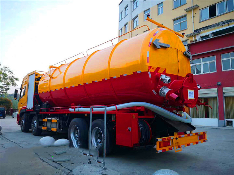 東風(fēng)天龍后八輪高壓清洗吸污車:采用國產(chǎn)優(yōu)質(zhì)碳鋼板制作,罐體采用一次成型而成,鋼板厚度8mm厚,封頭8mm厚,采用通潔或者品浮高壓清洗泵,大功率國產(chǎn)水循環(huán)吸污泵,加裝液壓卷盤,配60-100米高壓管,配10個(gè)多功能耐磨沖頭,尾部帶一個(gè)自流口,帶視糞窗,洗手裝置,吸污罐帶液壓頂起裝置,可以選擇吸污罐后蓋液壓打開或者不打開,配8米吸污管一根。東風(fēng)天龍清洗吸污車底盤配置:東風(fēng)天龍豪華駕駛室,康明斯發(fā)動(dòng)機(jī)270馬力,帶增壓,9檔變速箱,5噸前橋,10噸雙后橋,方向助力,斷汽剎,1100鋼絲胎(含一條備胎),原裝空調(diào)