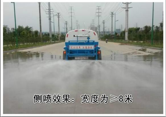灑水車專用部分介紹:該車具有前沖(噴)、后灑、帶側噴(花灑)、帶高位花灑、帶后工作平臺、平臺上安裝專用大功率綠化灑水高炮(炮有直流狀、大雨、中雨、毛毛雨、霧狀可調節,可噴灑農藥), 垂直吸程>7米,灑水寬度>14米,射程>28米,同時可作用高壓沖洗,應急消防,移動泵站等用途。