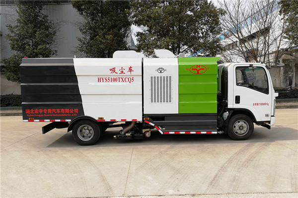 五十鈴掃路車采用國五/國六二類底盤改裝,加裝副發動機、風機、清水箱、垃圾箱、左右立掃、后置吸盤,掃盤降塵系統,液壓系統、專用裝置電控系統和副車架等改裝而成(可加裝前沖后灑,可以根據客戶要求做成方形、圓形箱體。)