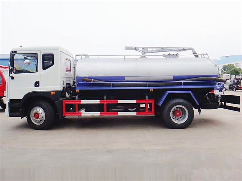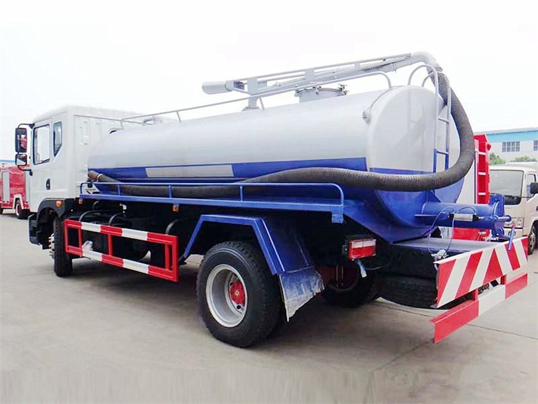 吸糞車上裝配置:罐體容積:11方,吸污罐體材質:優質碳鋼,?板材厚度6mm。配SK-15水循環吸污泵或10噸油泵,垂直吸程:9-10米,由取力器、傳動軸、專用真空吸污泵、高壓成型罐體、多路換向閥、吸污管道,管網系統,防溢閥門,102口徑鋁合金球閥,可視視糞管組成,8米橡膠鋼絲吸污管一根、罐體兩邊安裝液壓缸帶舉升功能,可以罐體舉升45度,后蓋液壓缸液壓打開,鎖緊裝置一套,排泄更干凈。