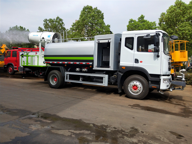 該車用于噴灑路面,起除塵和降溫作用的罐式專用作業(yè)汽車;罐體有效容積:10.8立方米,運(yùn)輸介質(zhì):水,密度:1000千克/立方米;罐體外形尺寸(長×寬×高)(mm)為:5000×2200×1460,整車長(mm)/前懸(mm)/軸距(mm)/后懸(mm)對應(yīng)關(guān)系為:8430/1430/4700/2300,8400/1400/4700/2300;8430/1430/4500/2500,8400/1400/4500/2500;隨底盤選裝駕駛室;側(cè)防,后防采用Q235材質(zhì)螺栓連接在大梁上,后防護(hù)截面尺寸(mm):140×50,離地高度(mm):450;ABS型號/生產(chǎn)廠家:3631010-C2000/東科克諾爾商用車制動系統(tǒng)(十堰)有限公司,ABS 8/東科克諾爾商用車制動系統(tǒng)(十堰)有限公司, 4460046450/威伯科汽車控制系統(tǒng)(中國)有限公司;在不影響專用性能情況下選裝前沖樣式和花灑等灑水裝置,選裝不同外觀.