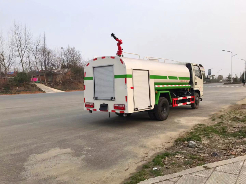 上裝配置:罐體采用武鋼專用容積板制作,實際容積5立方,罐內隔板具有防波作用,以減低汽車行駛時罐體液體的沖擊。泵進泵出,消防栓接口,前沖、后灑、側噴、后工作平臺帶綠化水炮,垂直吸程 7米,灑水寬度 14-16米,射程 20-25米,引水時間5min,流量90m3/h。自流閥、濾網(wǎng)、帶自吸自排功能。兩根等長輸水管,金屬漆,其余標配。可加裝方向助力、空調、加裝藥盤、氣動控制閥、噴藥設備、非車帶泵動力等。