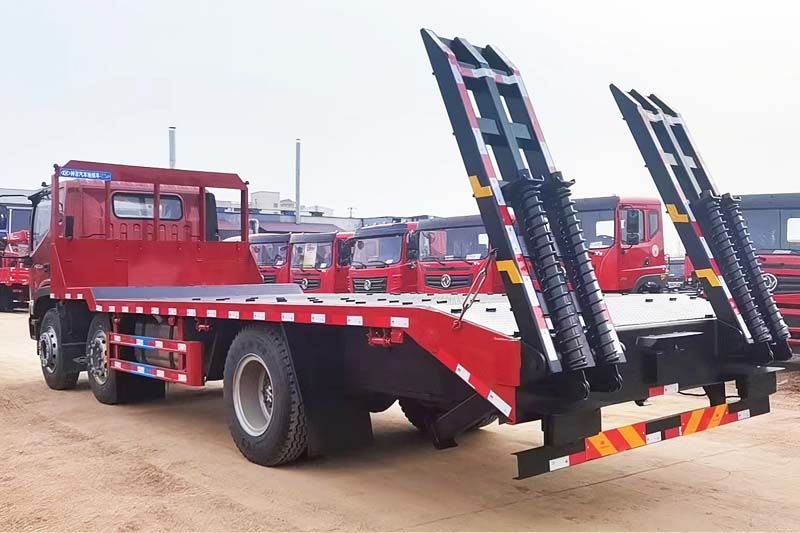 福田前四后四平板拖車,國六排放標(biāo)準(zhǔn),采用新款瑞沃ES5駕駛室,標(biāo)配中控鎖電動門窗、原廠空調(diào)、氣囊座椅、定速巡航、ABS等,可定制液壓雙節(jié)折疊爬梯,爬梯長度4米以上,運輸叉車等機(jī)械設(shè)備