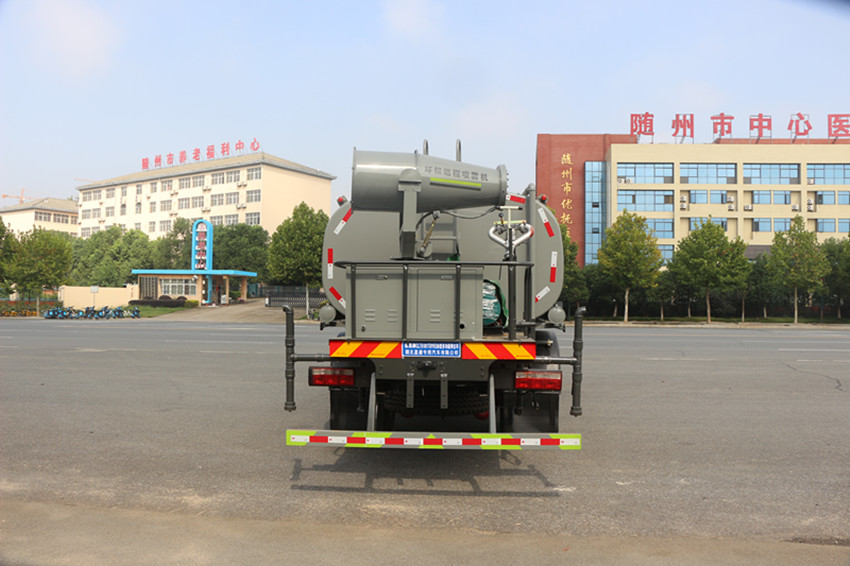 東風(fēng)天錦多功能抑塵車設(shè)計科學(xué),采用后帶風(fēng)送式噴霧機組。強大的風(fēng)送式噴霧機組動力可以給抑塵車提供持續(xù)的動力。不僅如此,噴射俯仰角可到-10°~90°,水平旋轉(zhuǎn)角更是可達360°。射程可達100米,垂直高度40米。罐體有效容積:8.5立方米,罐體外形尺寸(長×寬×高)(mm): 3100×2380×1670。實際容積:3100×2380×1670×0.85=10.5立方。所有裝10噸水綽綽有余。然而,國五東風(fēng)天錦多功能抑塵車抑塵效果突出,用水并不多。與灑水車相比,一臺灑水車一小時需要40噸水,一臺抑塵車一小時只需要4噸水,節(jié)水效果明顯。