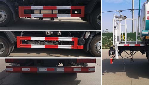 ABS生產企業:浙江萬安科技股份有限公司;側后防護情況:左右側防護及后下部 防護裝置均采用Q235B材質,均采用焊接連接,后下部防護尺寸:50×120(mm),離地面高度420mm; 罐體有效容積(立方米)、罐體外形尺寸(mm):4.17立方米、3000×1700×1150,3300×1600×1100; 專用功能及裝置:專用裝置:罐體;主要用于路面灑水及園林綠化;其他說明:整車長/后懸對應關系為(mm): 6500/2060,5950/1510;選裝外形結構。隨底盤選裝駕駛室,選裝管道箱及后部噴霧機結構。 |