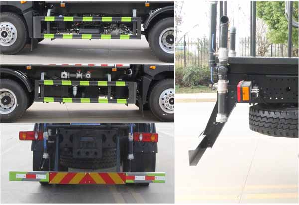 該車主要用于城鄉園林綠化噴灑;主要裝置為罐體及噴灑裝置.罐體總容量:12.16立方米;罐體有效容積:11.58立方米;罐體外形尺寸(長×長軸×短軸)(mm):4500×2450×1610.ABS型號及生產廠家為:3631010-C2000/東科克諾爾商用車制動系統(十堰)有限公司,J ABS/焦作博瑞克控制技術有限公司.側、后防護材料均為:Q235碳鋼,連接方式均為:螺栓連接,后部防護截面尺寸(mm):120×50,后部防護離地高度(mm):470.僅采用底盤3950mm軸距改裝.選裝前部不帶電子霧炮,選裝前部電子霧炮樣式.當前部不帶電子霧炮時,車長7750mm,無前伸;當前部選裝電子霧炮時,車長8250mm,前伸500mm.隨底盤選裝駕駛室.選裝自動球閥安裝位置,選裝后部箭頭燈裝置,選裝噴灑裝置樣式,選裝弧形噴灑裝置,選裝后部樣式.后部作業燈僅在作業時開啟,車輛行駛過程中不可開啟.選裝罐體頂部方形罐口,選裝工具箱裝置,選裝罐體頂部高位花灑裝置,選裝前部鴨嘴裝置.隨底盤選裝尿素罐/電瓶框/儲氣筒布置位置.