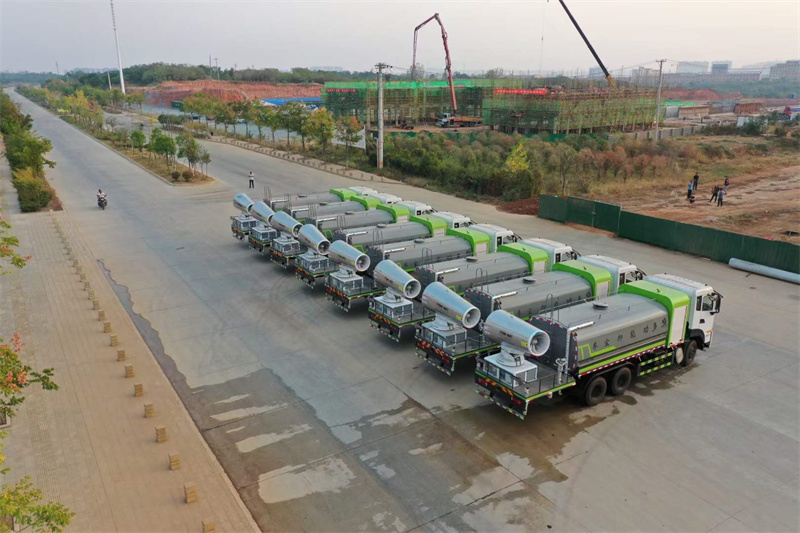 一. 產(chǎn)品簡述 抑塵車又稱為綠化噴灑車、多功能灑水車、園林綠化灑水車。抑 塵車適合于各種路面沖洗,樹木、綠化帶、草坪綠化,道路、廠礦企業(yè) 施工建設(shè),高空建筑沖洗。抑塵也可以作為運(yùn)水車使用,最常見的車 型有綠化噴灑車、多功能灑水車、綠化灑水車幾大類。 我公司產(chǎn)品標(biāo)配前噴(鴨嘴)、后沖、后灑、側(cè)噴、后置式工作 平臺,平臺上配置綠化水炮(可 360°旋轉(zhuǎn),既可以調(diào)成柱狀,也可 以調(diào)成霧狀,更可以調(diào)成直沖狀、大雨、中雨、小雨、毛毛雨),配 備優(yōu)質(zhì)大功率專用灑水泵(可自吸自排,可從河里或池塘抽水到罐體), 取力器,雜物過濾網(wǎng),消防接口,自流球閥系統(tǒng)、取力器、球閥、濾網(wǎng) 均為國家標(biāo)準(zhǔn)產(chǎn)品,主管道加粗,法蘭墊、法蘭盤加厚,大通徑球閥。 整體具備性能優(yōu)良安全可靠、效率高、流量大、維修方便等特點(diǎn)。