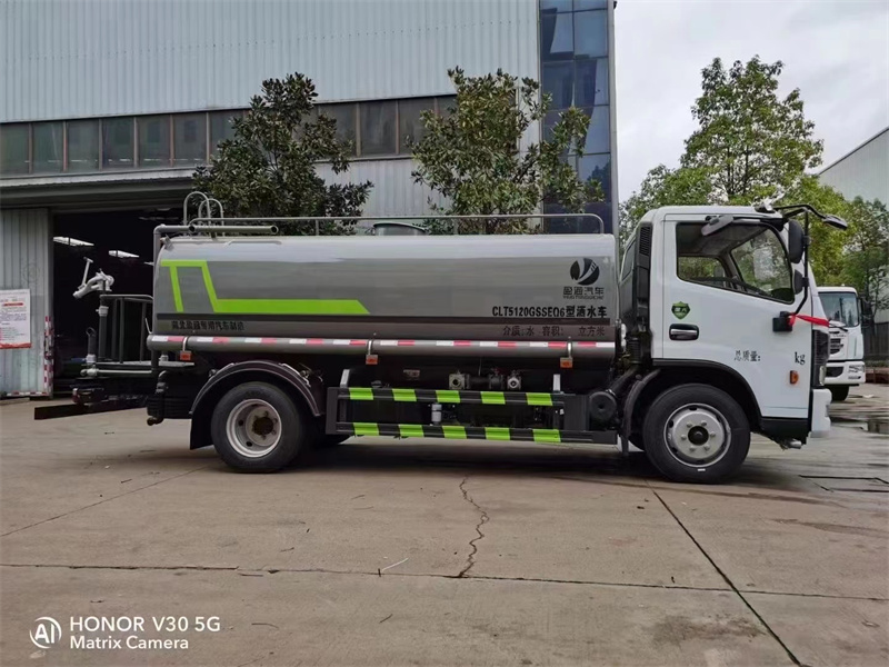 東風多利卡 9.3 方灑水車產品主要技術參數 序號 名稱 型號、規格 1 整車型號 CLT5120GSSEQ6 型灑水車 2 發動機型號 YCY30165-60 3 發動機馬力/功率 玉柴 165 馬力/121KW 4 發動機排量 2970ML 5 變速箱 萬里揚 6 檔 6 輪胎規格 245 真空胎 7 軸距 3800 8 總質量 11995KG 9 整備質量 4600KG 10 額定載質量 7200KG 11 整車尺寸(長×寬×高) 7.1*2.35*2.8 12 罐體容積 9.3 方 13 燃料種類 柴油 14 排放標準 國六 15 水泵型號 40/50 16 罐體材質 Q235 碳鋼
