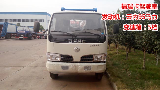 東風福瑞卡擺臂式垃圾車,福瑞卡駕駛室外形,云內95馬力發動機,5檔變速箱,前橋1.8噸,后橋3.5噸,軸距3.3米,7.00-16輪胎,單層大梁,氣剎、ABS。