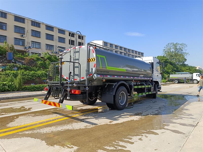 東風華神 14.3 方灑水車產品配置 1.底盤配置: 發動機玉柴 200 馬力(六缸),法士特 8 檔變速箱,前橋 3.6 噸,后橋 9 噸,10.00 鋼絲胎,軸距 4500,斷氣剎,ABS,空調,中控 鎖,電動玻璃,助力,多功能方向盤,氣囊座椅2.上裝配置: 1、罐體約為 14.3 方, 2、邊燈帶電,罐體尾部上方標配 2 個紅色示寬燈, 3、標配前噴為鴨嘴直沖,標配后沖,用戶可根據自己的需求,來調 整對沖位置。 4、沖孔平臺(承載能力加強),炮筒后蓋為定制型螺栓卡扣, 5、前噴、后沖、后灑、側噴,綠化高炮開關球閥均采用 50 大通經 不銹鋼球閥, 6、新式軸承式水炮,更加耐用, 7、60-90 型水泵, 8、防腐法蘭墊片, 9、鋁制后灑,不易炸開 10、罐體自動焊(美國林肯焊機及電源),拼板自動焊接,封頭環 縫焊接,無氣孔,焊縫美觀。 11、側護網、后保險杠、均為螺栓連接,方便拆卸,維修方便。 12、塑料擋泥板,替代鐵擋泥板,更加輕便,用螺栓連接,方便拆 卸。 13、前部、后部主管連接處為 6 孔圓法蘭,不易沖墊