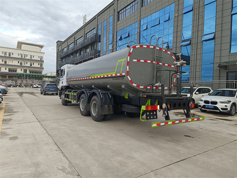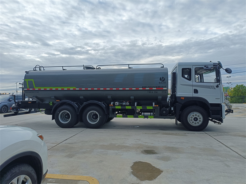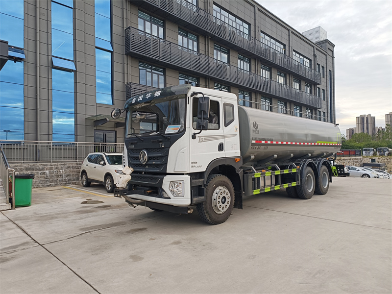 東風22噸灑水車產品標配前噴(鴨嘴)、后沖、后灑、側噴、后置式工作 平臺,平臺上配置綠化水炮(可 360°旋轉,既可以調成柱狀,也可 以調成霧狀,更可以調成直沖狀、大雨、中雨、小雨、毛毛雨),配 備優質大功率專用灑水泵(可自吸自排,可從河里或池塘抽水到罐體), 取力器,雜物過濾網,消防接口,自流球閥系統、取力器、球閥、濾網 均為國家標準產品,主管道加粗,法蘭墊、法蘭盤加厚,大通徑球閥。 整體具備性能優良安全可靠、效率高、流量大、維修方便等特點。