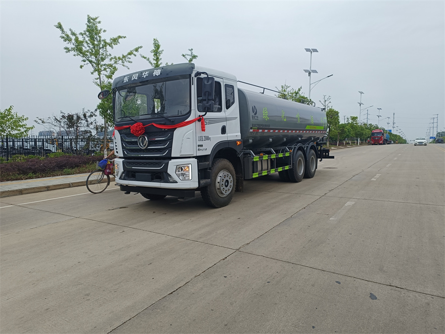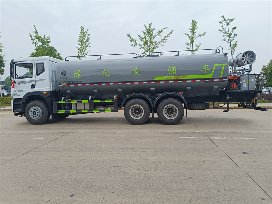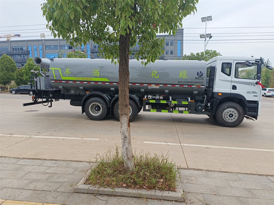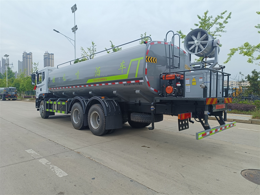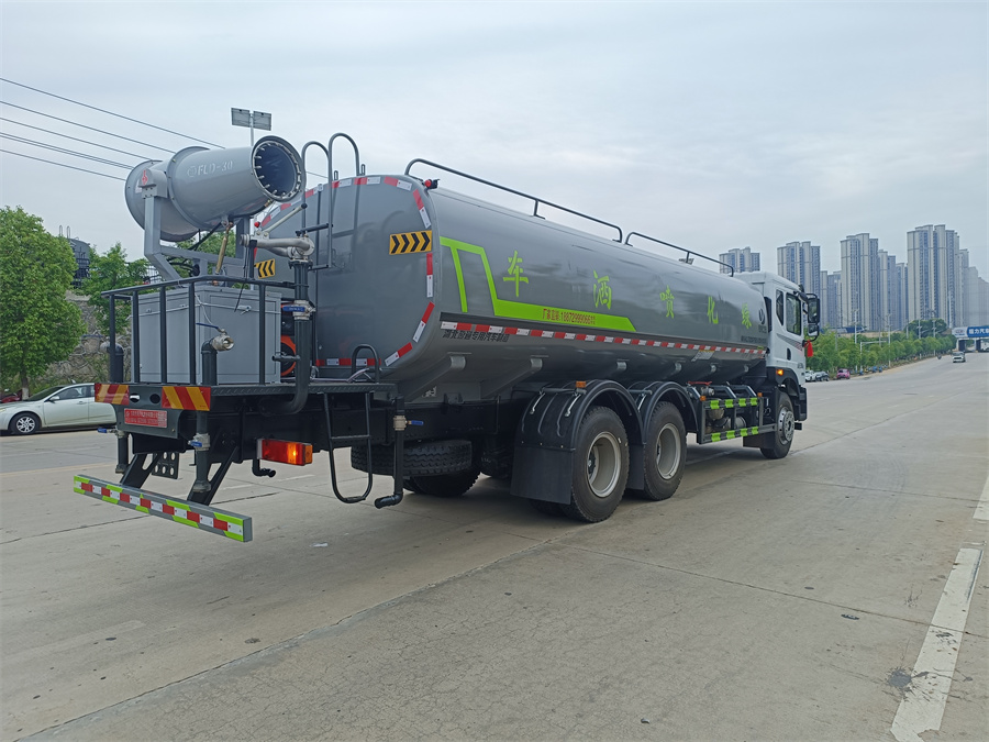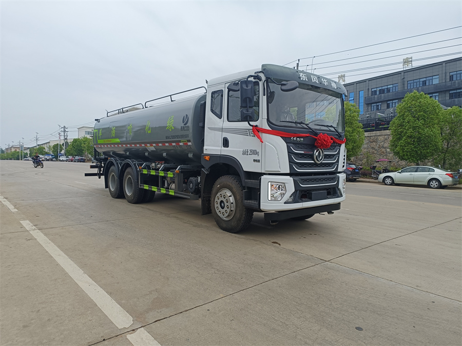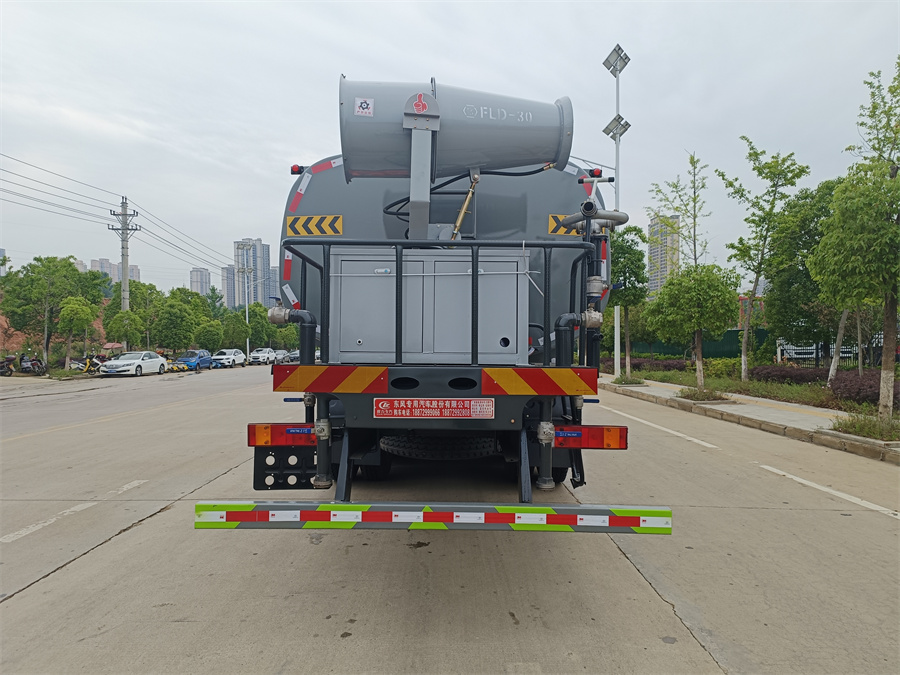 東風新款22噸霧炮灑水車產品標配前噴(鴨嘴)、后沖、后灑、側噴、后置式工作 平臺,平臺上配置綠化水炮(可 360 °旋轉,既可以調成柱狀,也可 以調成霧狀,更可以調成直沖狀、大雨、中雨、小雨、毛毛雨),配 備優質大功率專用灑水泵(可自吸自排,可從河里或池塘抽水到罐體), 取力器,雜物過濾網,消防接口, 自流球閥系統、取力器、球閥、濾網 均為國家標準產品,主管道加粗,法蘭墊、法蘭盤加厚,大通徑球閥。 整體具備性能優良安全可靠、效率高、流量大、維修方便等特點。
