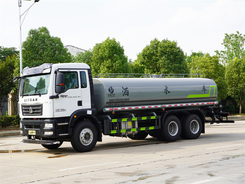 重汽汕德卡18噸灑水車產(chǎn)品標(biāo)配前噴(鴨嘴)、后沖、后灑、側(cè)噴、后置式工作 平臺,平臺上配置綠化水炮(可 360°旋轉(zhuǎn),既可以調(diào)成柱狀,也可 以調(diào)成霧狀,更可以調(diào)成直沖狀、大雨、中雨、小雨、毛毛雨),配 備優(yōu)質(zhì)大功率專用灑水泵(可自吸自排,可從河里或池塘抽水到罐體), 取力器,雜物過濾網(wǎng),消防接口,自流球閥系統(tǒng)、取力器、球閥、濾網(wǎng) 均為國家標(biāo)準(zhǔn)產(chǎn)品,主管道加粗,法蘭墊、法蘭盤加厚,大通徑球閥。 整體具備性能優(yōu)良安全可靠、效率高、流量大、維修方便等特點(diǎn)。