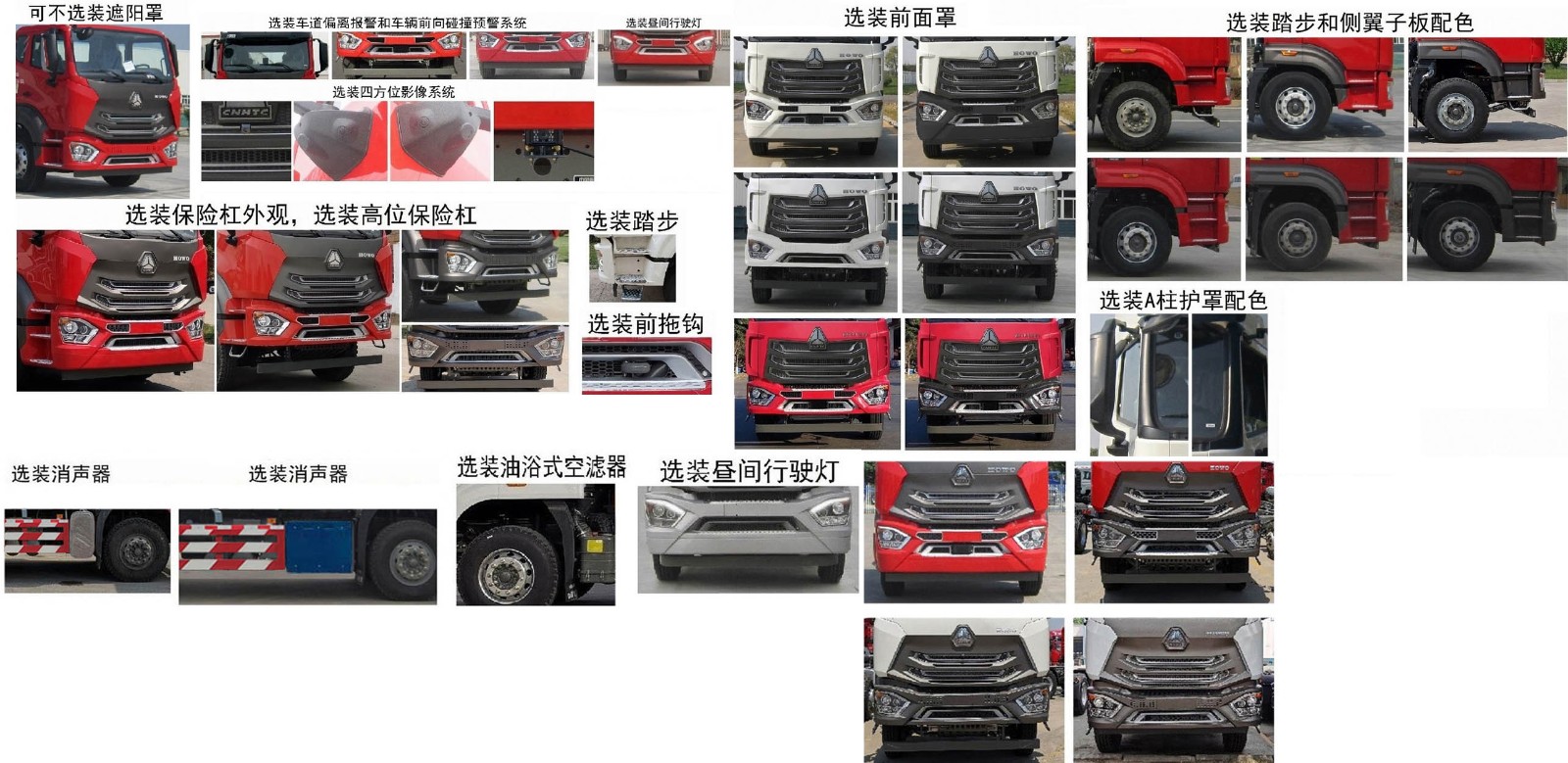 重汽大型勾臂垃圾車該車主要用于垃圾轉運,專用裝置為勾臂;僅采用軸距(mm)4325+1350;側/后部防護材料為:Q235碳鋼,連接方式均為:螺栓連接,后部防護截面尺寸(mm):120×50,后部防護離地高度(mm):490;ABS型號:446 004 6300;ABS生產企業:采埃孚商用車系統(青島)有限公司;選裝直接供電式ETC車載裝置;該車安裝具有衛星定位功能的行車記錄儀.隨底盤選裝限速裝置;限速裝置限速(km/h):89;發動機/油耗值(L/100km)對應關系為:WP10H400E62/31.64,WP9H350E62/31.32,MC07.29-60/32.28,MC07.27-60/32.28,MC07H.33-60/31.57,WP8.350E61/32.17,MC07.31-60/32.28,MC07H.35-60/31.57;隨底盤選裝駕駛室,隨底盤選裝高位保險杠,選裝保險杠外觀,選裝踏步,選裝晝間行駛燈,選裝油浴式空濾器,選裝消聲器,選裝前面罩,選裝側翼子板和踏步配色.發動機凈功率值:199kW(MC07.27-60),210kW(MC07.29-60),215kW(WP7.300E61),225kW(MC07.31-60),237kW(MC07H.33-60),254kW(MC07H.35-60),252kW(WP8.350E61),252kW(WP9H350E62),289kW(WP10H400E62)。
