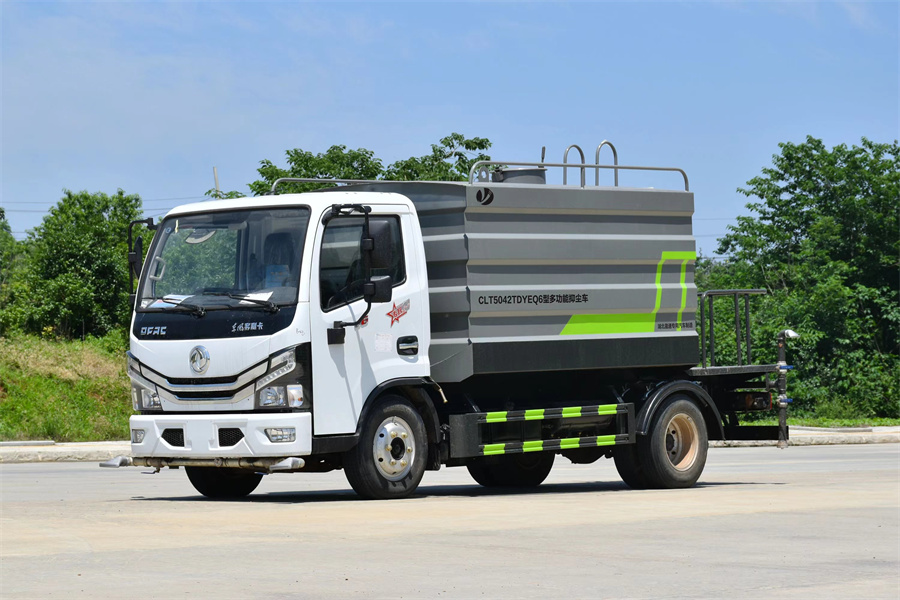 1.產品簡述:縱昂牌 CLT5042TDYEQ6 型多功能抑塵車標配前噴(鴨嘴)、后對 沖、后灑、側噴、后置式工作平臺,平臺上配置綠化水炮(可 360°旋轉,既可 以調成柱狀,也可以調成霧狀),配備優(yōu)質大功率專用灑水泵(可自吸自排, 可從河里或池塘抽水到罐體),取力器,雜物過濾網,消防接口,自流球閥系統(tǒng)、 取力器、球閥、濾網均為國家標準產品,主管道加粗,法蘭墊、法蘭盤加厚, 大通徑球閥。整體具備性能優(yōu)良安全可靠、效率高、流量大、維修方便等特點