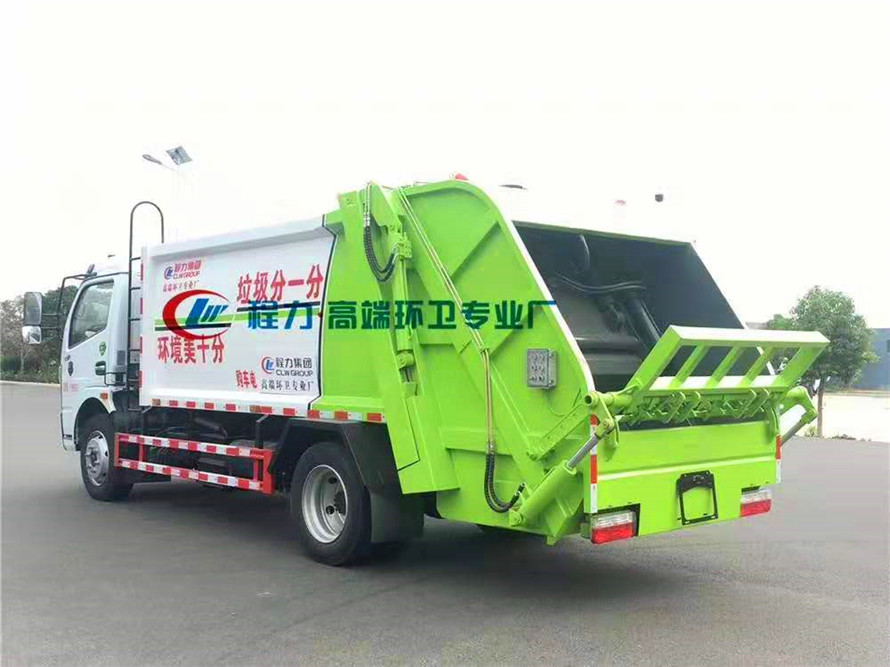 國六東風(fēng)D7壓縮式垃圾車,采用東風(fēng)原裝EQ1095SJ8CD2型號(hào)的載貨汽車底盤,軸距3800mm,東風(fēng)D7白色可前翻豪華駕駛室,玉柴140馬力國六發(fā)動(dòng)機(jī),動(dòng)力強(qiáng)勁,節(jié)能降耗,6檔變速箱,7.50R16原廠鋼絲胎,前橋2.2噸,后橋5.5噸,多功能方向盤,電動(dòng)玻璃,中控鎖,LED大燈,原廠ABS,帶方向助力,氣剎制動(dòng),空調(diào)。