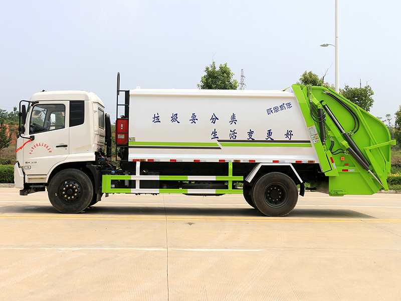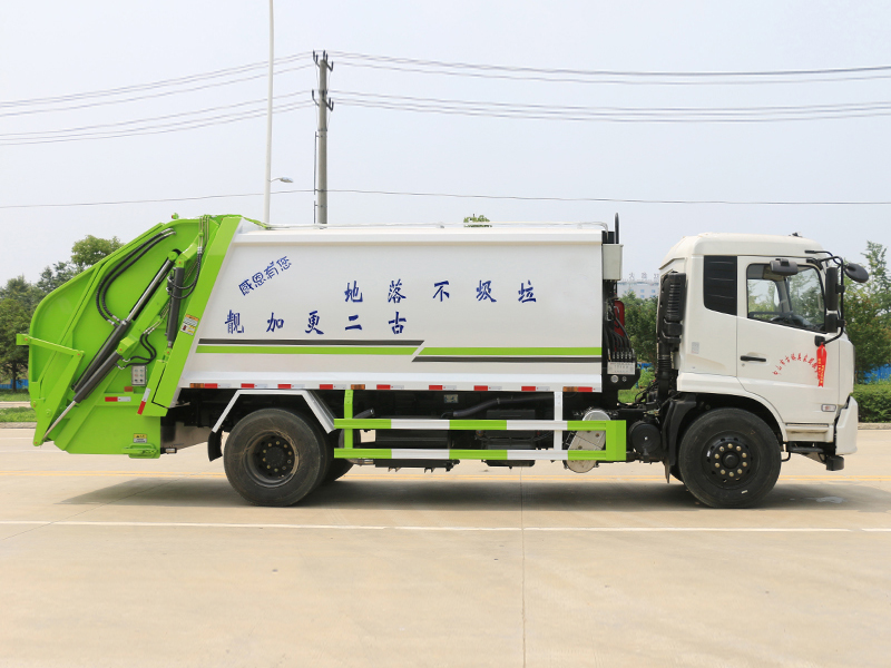 新款平面弧形廂體,廂體材料為武鋼優(yōu)質(zhì)碳鋼,外箱尺寸:8890×2500×3300mm,有效壓縮容積12-14立方,PLC一鍵操作控制,手電一體操作模式,兩側(cè)雙電控,帶駕駛室內(nèi)操作,底板支撐加強(qiáng),雙向壓縮,開放式易清潔污水箱。壓縮式垃圾車采用機(jī)電液一體化技術(shù),借助機(jī)、電、液聯(lián)合自動(dòng)控制系統(tǒng)、電腦控制、手動(dòng)操作系統(tǒng),通過填裝器和推鏟等專用裝置,實(shí)現(xiàn)垃圾倒入、壓碎或壓扁、強(qiáng)力裝填,把垃圾擠入車廂并壓實(shí)和推卸,污水全部進(jìn)入污水收集箱,解決了垃圾運(yùn)輸過程中的二次污染的問題。壓縮式垃圾車具有自動(dòng)反復(fù)壓縮以及蠕動(dòng)壓縮功能,壓縮比高、密封性好、裝載量大﹑操作方便、環(huán)保性好﹑整車?yán)霉β矢叩葍?yōu)點(diǎn)。