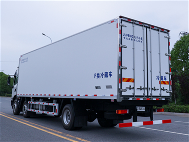 東風天錦8米6冷藏車廂體配置為:斷橋隔溫工藝,整體結(jié)構(gòu)框架,內(nèi)外面料為3mm新款啞光玻璃鋼夾保溫層真空復(fù)合而成,廂體厚度為8cm,最新款鋁合金包邊型材,型材局部厚度為4mm(鋼制鉚釘加固),廂體內(nèi)部采用2個LED照明燈及廂體示寬燈,后門框不銹鋼材質(zhì),門框密封條為三元乙丙橡膠材質(zhì),加厚型不銹鋼合頁及鎖件;副梁為Q700車用大梁鋼,15mm厚大梁墊皮,加裝防撞膠塊,不銹鋼門鎖件,配后雙開門,副駕駛一側(cè)居中靠前開單側(cè)門一個,帶2個排水孔。