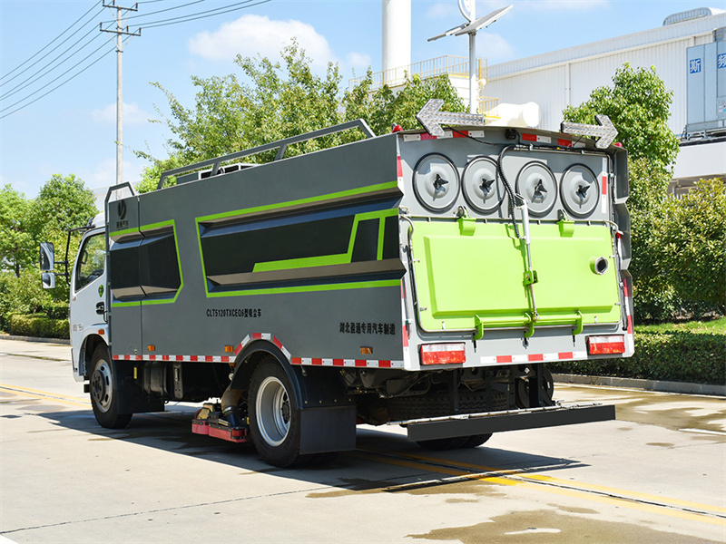 8. 尾部加有噴桿,通過電磁隔膜泵驅動噴水路面抑塵。箱體上裝:優質碳銹鋼垃圾箱,3mm 邊板,4mm 底板,用于儲存垃圾,底板整體 折邊無縫焊接,杜絕了泄漏風險。簡潔美觀、抗變形性能強、結構可靠性好,同時有 效增加實際裝填容積,超過同類產品,不易變形、耐磨損、耐腐蝕性強。 自卸:液壓缸舉升,垃圾箱自卸。 副發動機:副發動機為風機運轉提供動力。風機:副發動機和風機是清掃車的兩大核心部件、副發動機為風機運轉提供動力、使 得路面垃圾被吸入箱體內部存放,從而實現路面清潔作業。風機采用大功率耐磨離心 式免維護風機,無噪音,效率高風量大,使用壽命長。 自動離合器:減少風機啟動和停止時對發動機的沖擊。離合器在使用過程中具有高度 耐磨、使用壽命長、低噪音、低油耗量和節省成本的優點。 吸盤:吸盤內置滾掃,有效清掃路面垃圾。 濾芯:豎直濾筒,方便清理、拆卸。 電磁閥:海普瑞斯電磁閥組是車輛液壓系統的核心部件,控制整車液壓驅動,雙向操 作按鈕,包括掃盤升降、吸盤升降、垃圾箱舉升、后門開閉等一系列機械操作,隨車 配備的有電磁閥控制盒罩,有效避免灰塵及垃圾物進入盒內。 側邊刷:增加作業寬度,并有效將垃圾掃入吸盤位置。 影像系統:車體后方裝有監視探頭,實時監控作業情況并顯示在駕駛室內顯示屏上, 最大限度的保證清吸效果。控制開關:集成疊加設計,PLC 駕駛室電液集中控制,方便操作。 電子隔膜泵:控制尾部噴水桿,噴水抑塵。 應急系統:可通過手動應急液壓泵來控制全車液壓系統。 尾部噴水:作業完成后,尾部抑塵。