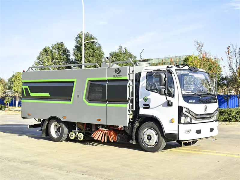 1. 東風(fēng)多利卡洗掃車采用洗,掃,吸,混合的方式收集垃圾,濕式除塵、電液