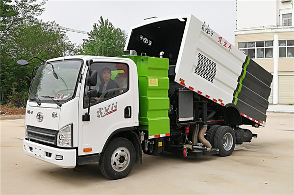 上裝配置:該車型在二類底盤上進(jìn)行改裝,加裝副發(fā)動機(jī)、風(fēng)機(jī)、清水箱、垃圾箱、掃刷、后置吸盤,掃盤降塵系統(tǒng),液壓系統(tǒng)、專用裝置電控系統(tǒng)和副車架等改裝而成。