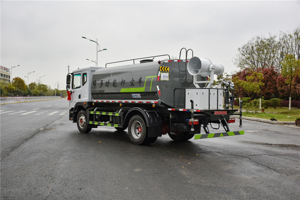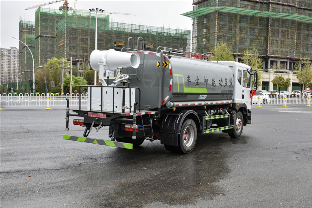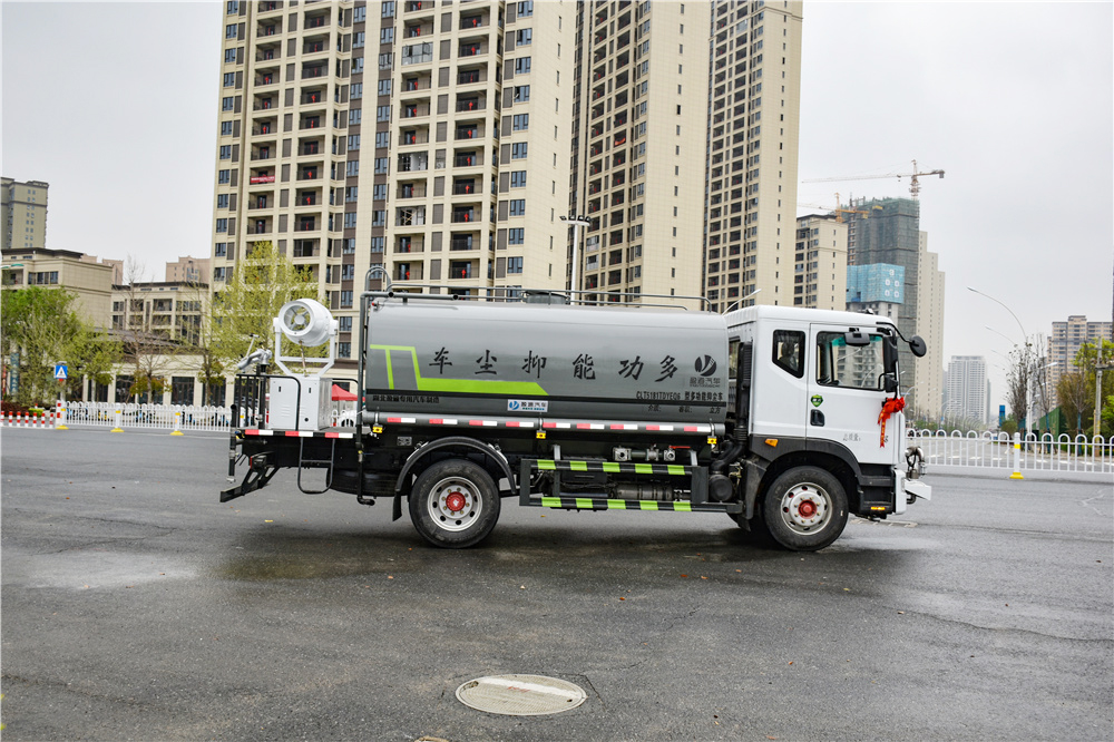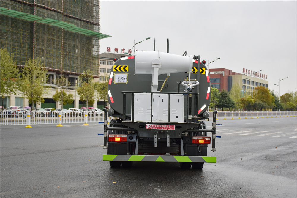 用功能配置:罐體實際容積約為12--14--16立方米,采用武鋼優質碳鋼板卷壓成型,自動焊接。配備專用灑水泵,自吸自排,前噴后灑、側噴、后工作平臺及灑水高壓炮灑水泵自吸高度為6米左右,整車灑水寬度14米左右,后工作平臺高壓水炮上下左右360°旋轉可調成:直沖狀大雨中雨、霧狀、有效射程28米,整車帶接頭水位計,自流閥后工作平臺主管路帶1寸澆花接口,附送2根3米水管,1個爬梯,兩側及后保險杠。