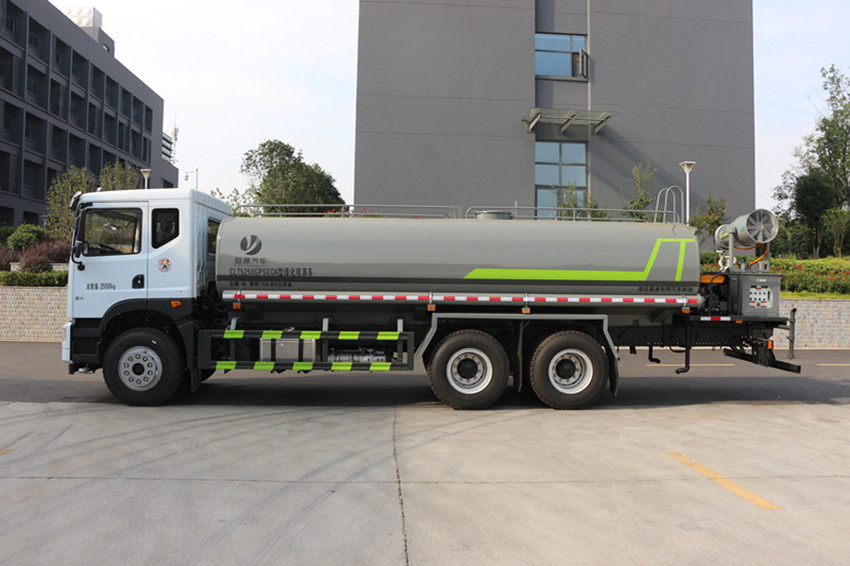 罐體采用標準Q235碳鋼制作,罐體自動焊,裝水20噸,配大功率專用灑水車,可自吸自排,前沖后灑,側噴,高位花灑,主管道加粗,大通徑球閥,直通球閥式消防接口,帶后工作平臺,沖孔平臺,帶高炮。(可選裝大平臺,可裝30米霧炮降塵)。環保,免征齊全。