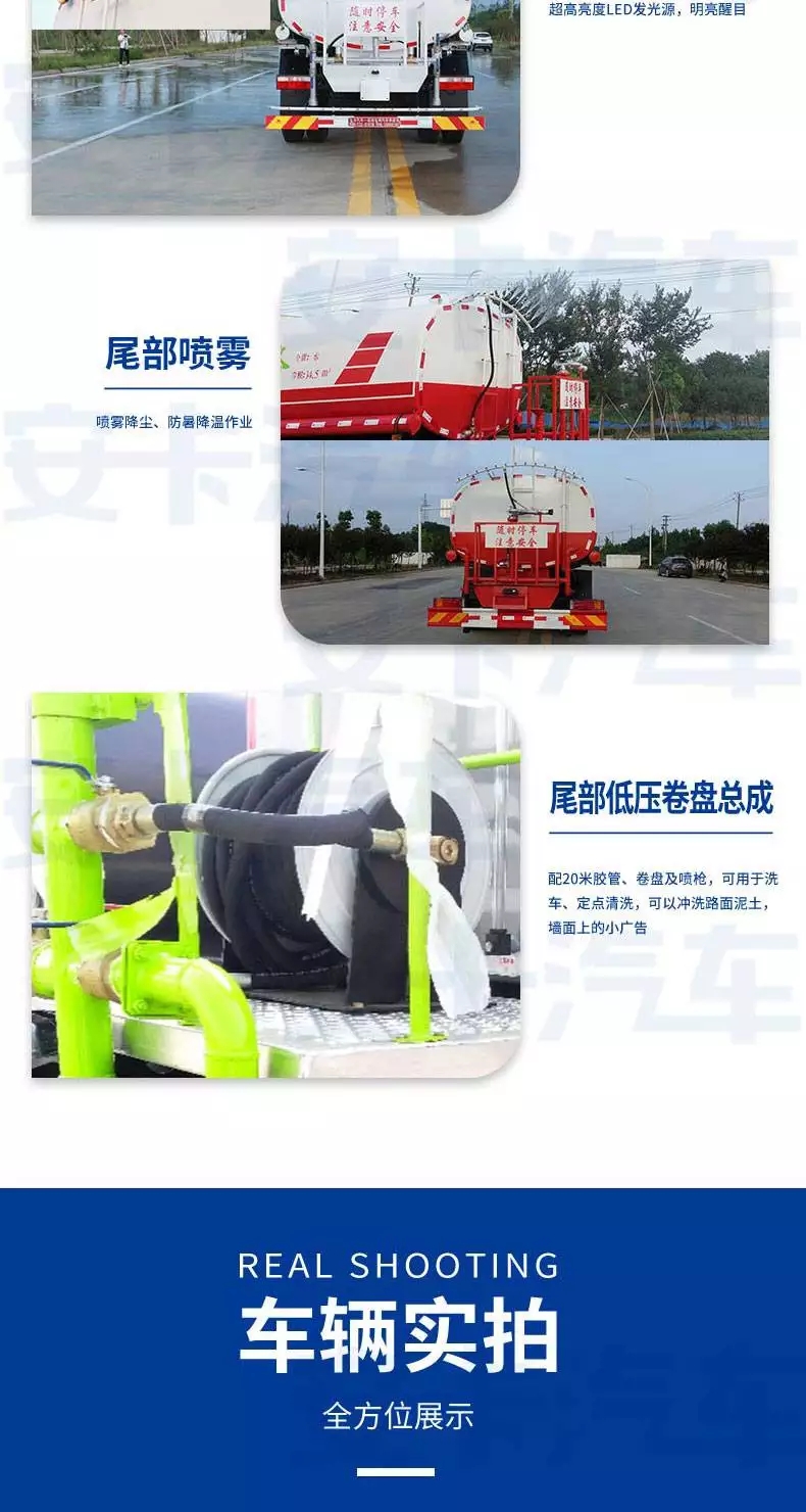 配備大功率專用灑水泵,泵可自吸自排,安裝過濾網,帶消防接口,可通過消防栓進水,帶自流閥,隨車選裝20米綠化卷盤,可噴灑農藥,罐體金屬漆。罐體有橢圓和方圓罐兩種,可根據用戶的要求定做