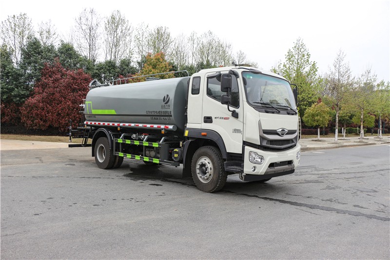 三.產品主要技術參數 序號 名稱 型號、規格 1 整車型號 CLT5181GPSBJ6 型綠化噴灑車 2 發動機型號 YCS06245-60 3 發動機馬力/功率 玉柴 245 馬力/180KW 4 發動機排量 6234ML 5 變速箱 法士特 8 檔(帶高低檔) 6 輪胎規格 10.00 鋼絲胎 7 軸距 3950 8 總質量 18000KG 9 整備質量 6790KG 10 額定載質量 11015KG 11 整車尺寸(長×寬×高) 7.5*2.5*3.2 12 罐體容積 14.2 方 13 燃料種類 柴油 14 排放標準 國六 15 水泵型號 60/90 16 罐體材質 Q235 碳鋼
