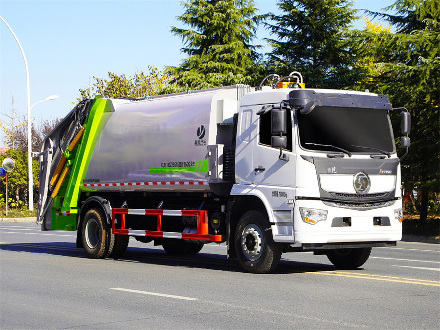 該車主要專用裝置由箱體、壓縮系統組成,用于垃圾的收集與清運;選裝側部及后部上料結構;采用底盤5100mm,4500mm,4000mm軸距改裝;整車長(mm)/軸距(mm)/前懸(mm)/后懸(mm)/后伸(mm)對應關系為:9570/側防護裝置材料:Q235碳鋼,連接方式:螺栓連接;后部防護為專用裝置代替,后部防護離地高度(mm):490;ABS系統生產廠家及型號分別為:西安正昌電子股份有限公司(型號:ZQFB-V);安裝具有衛星定位功能的行駛記錄儀;發動機型號/油耗申報值(L/100km)對應關系為:B6.2NS6B230/26.60,B6.2NS6B210/26.60,YCS06270-60/26.58,YCS06245-60/26.58,WP6H270E61/26.24,WP6H245E61/26.24,YCK05240-60/26.04,YCK05210-60/26.04,YCK05190-60/26.04,WP4.6NQ220E61/26.53,B6.2NS6B260/26.60,B6.2NS6B245/26.60,YCS04200-68/24.70,WP4.6NQ220E61A/26.53,WP7H270E68/25.39,WP4.6NQ220E62/26.53,YCS04200-61A/24.70,YCS04220-61A/24.70,D4.5NS6B240/24.69,WP4.6NQ240E62/26.53;選裝直接供電式ETC車載裝置;后軸僅采用鋼板彈簧懸架改裝。隨底盤選裝駕駛室.